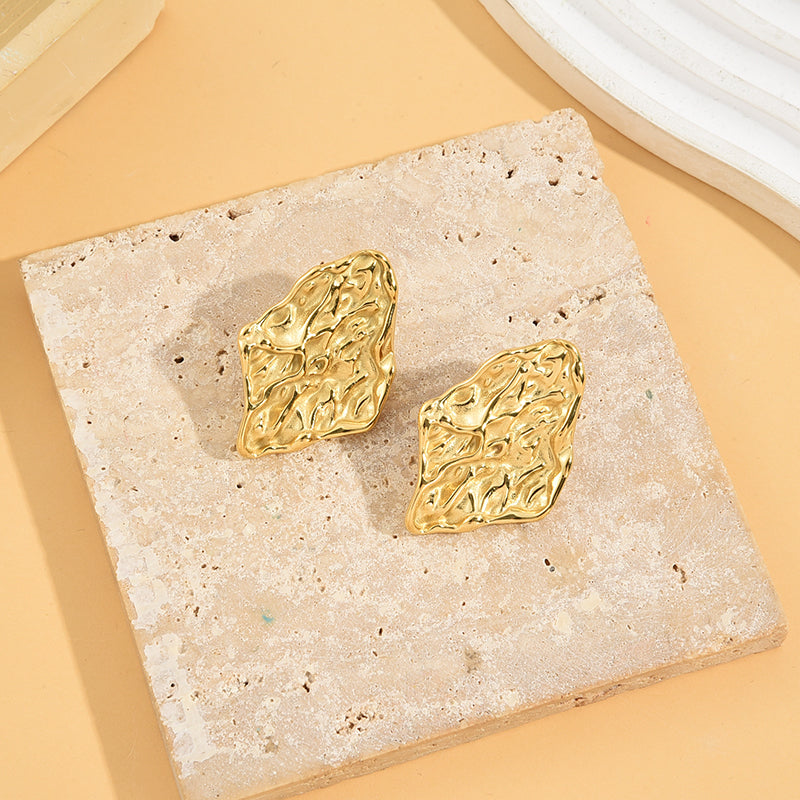Boucles d'Oreilles Dorées Plaques Froissées.